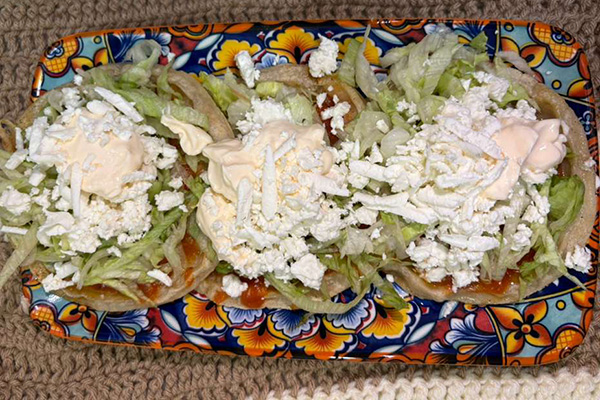Cord Tostada, Bean, Mayonnaise, Lettuce, CheeseSOPES (Corn Lettuce,Cheese,Meat) $5