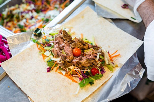 Ingredients : Tomatoes, cucumber, pickles, tahini, and Mediterranean saladSHAWARMA WRAPS