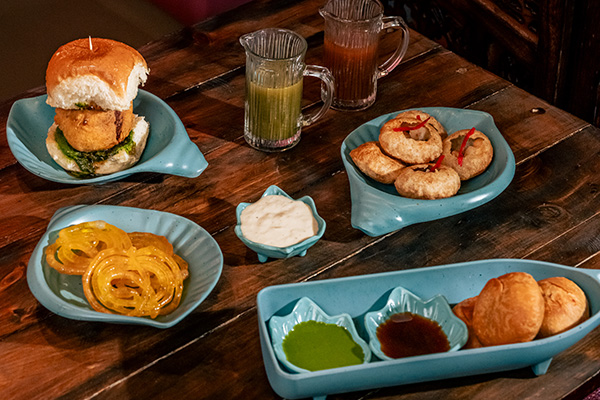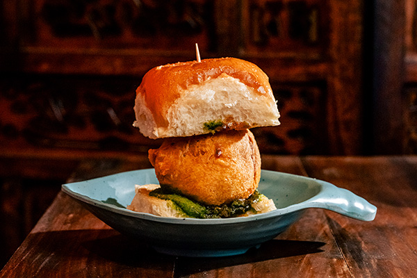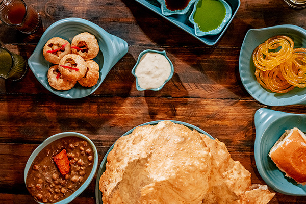 Spiced potato patties topped with chale, onion and garnished with chutneys.