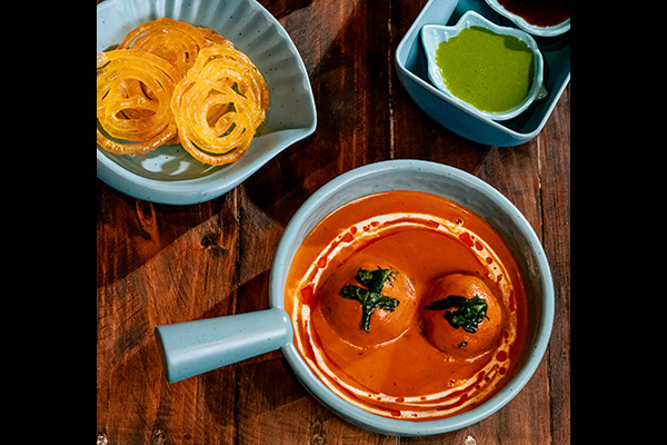 Fresh jalebi served with chilled rabri (Indian style mild dip with cardamom).