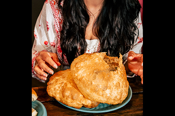 Airy, deep-fried leavened bread, a classic Indian delight.
