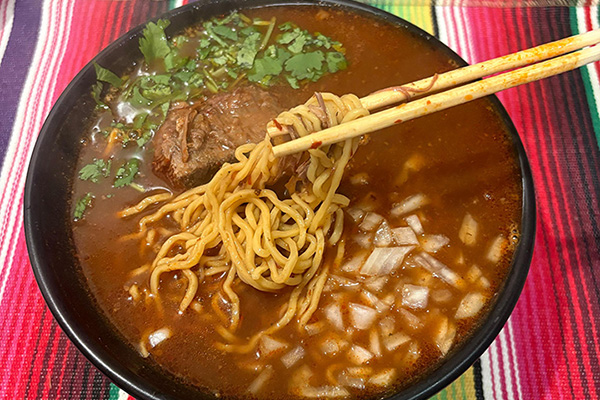 Traditional Birria With Ramen NoodlesCOSTILLA VERDE/ROJA $15