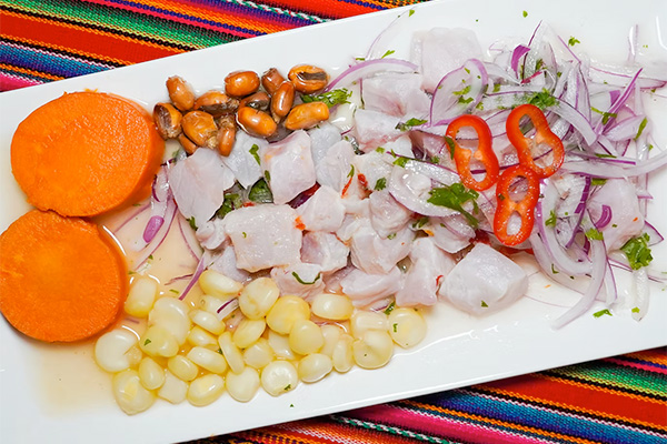 Fish of the day, shrimp & octopus, ajirocoto, leche de tigre; served with choclo, cancha & sweet potato.CEVICHE CLÁSICO $21