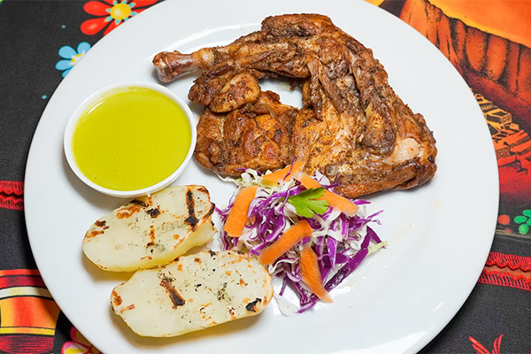 Ground beef burger, chalah roll bun, lettuce, tomatoes, grilled onions, pickles, and cheese. Served with fries. (add avocado $2, add bacon $3)CLASSIC POLLADA “CHIMPÚN CALLAO” $20