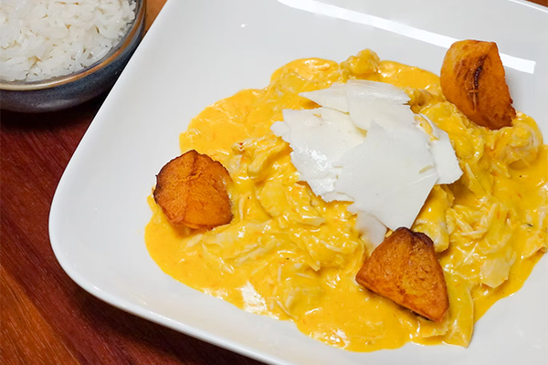 Peruvian-style stir-fried noodles with beef tenderloin, soy sauce, tomatoes and onions.AJI DE GALLINA $24