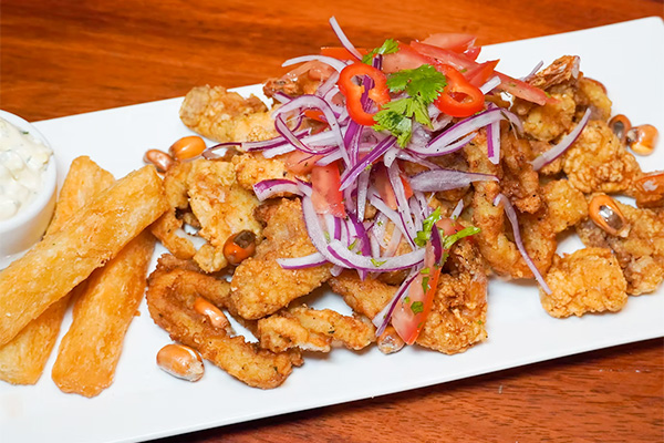 Fried mixed-seafood platter (fish, calamari, shrimp) with yuca frita, salsa criolla & tartar sauce.MAIN DISHES