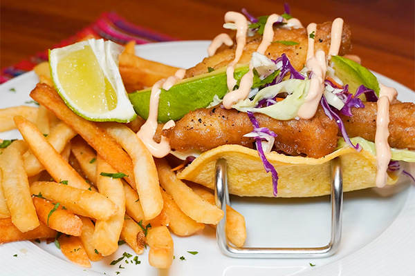 Grilled Spanish octopus marinated in Anticuchero sauce; served with grilled potatoes, choclo and chimichurri sauce.FISH TACOS $18